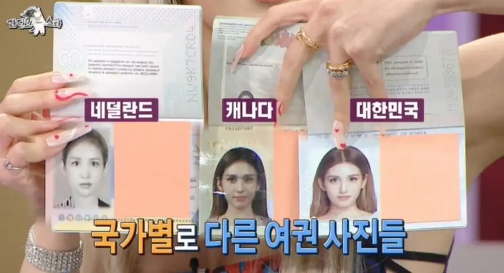 “我的父亲是加拿大和荷兰的双重公民,我的母亲是韩国人,”她解释道。“我有三本护照。”这位偶像在节目中展示了所有三本护照,令其他演员感到惊讶。打开护照,她透露了他们三人的照片如何不同,并补充道,“这些照片都不一样。它们的制作材料也不同。荷兰护照上的照片是用塑料制成的。”